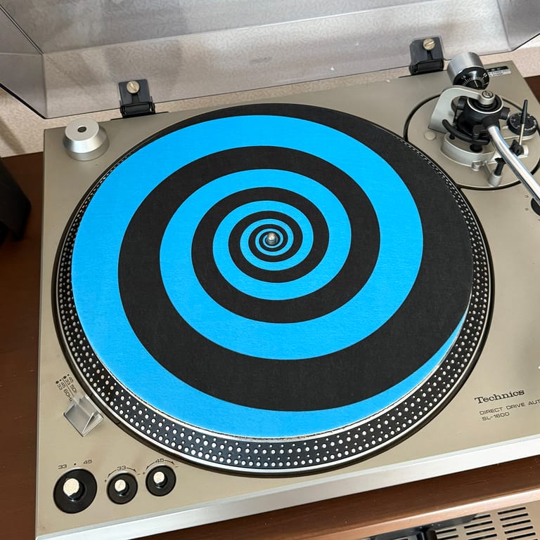 Turntable Felt Slipmat Blue and Black Spiral Pattern